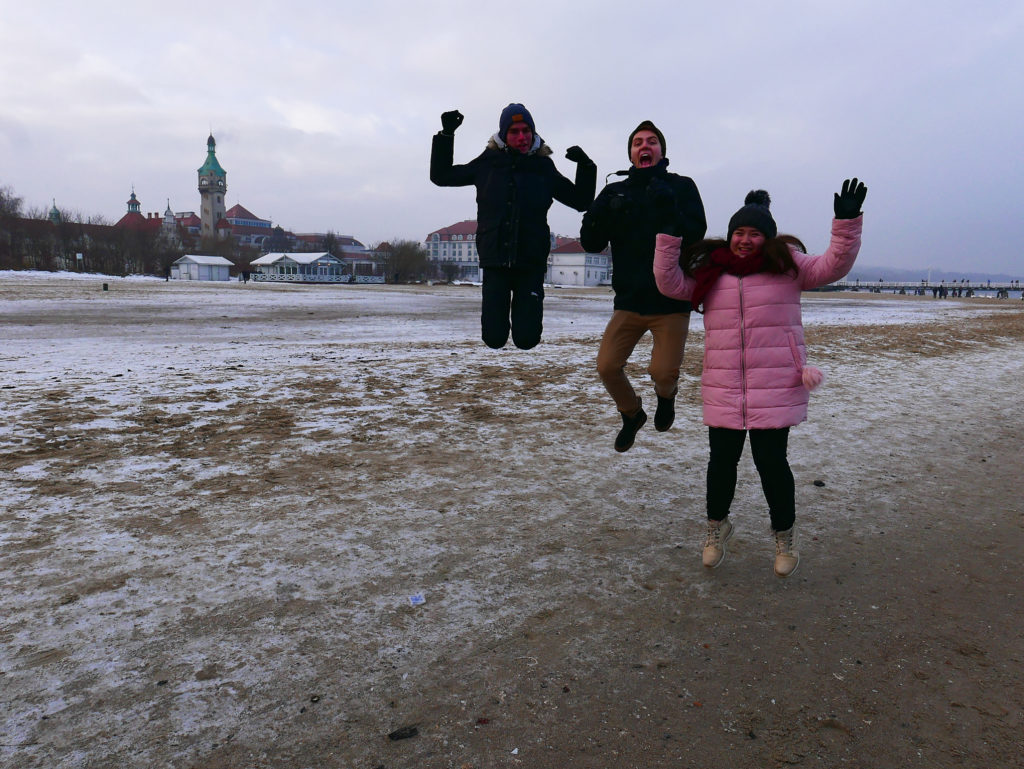 W środku ferii mazowieckich zamiast jak wszyscy jechać w góry wybrałam się z synem oraz Romi z Chile i Nevinem z USA do Sopotu. Romi za tydzień zmienia rodzinę i przechodzi mieszkać do nas, na wymianę z Tajwańczykiem.